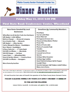 All meal & auction item sales will benefit the operation of the Platte County Senior Outreach Center.